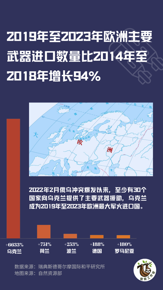 欧洲在进口武器上花了大价钱却使自身深陷地缘政治和经济困境,美国军工企业却利用冲突赚了个盆满钵溢。根据斯德哥尔摩国际和平研究所的报告,2019年至2023年欧洲国家进口的武器中,55%从美国而来。