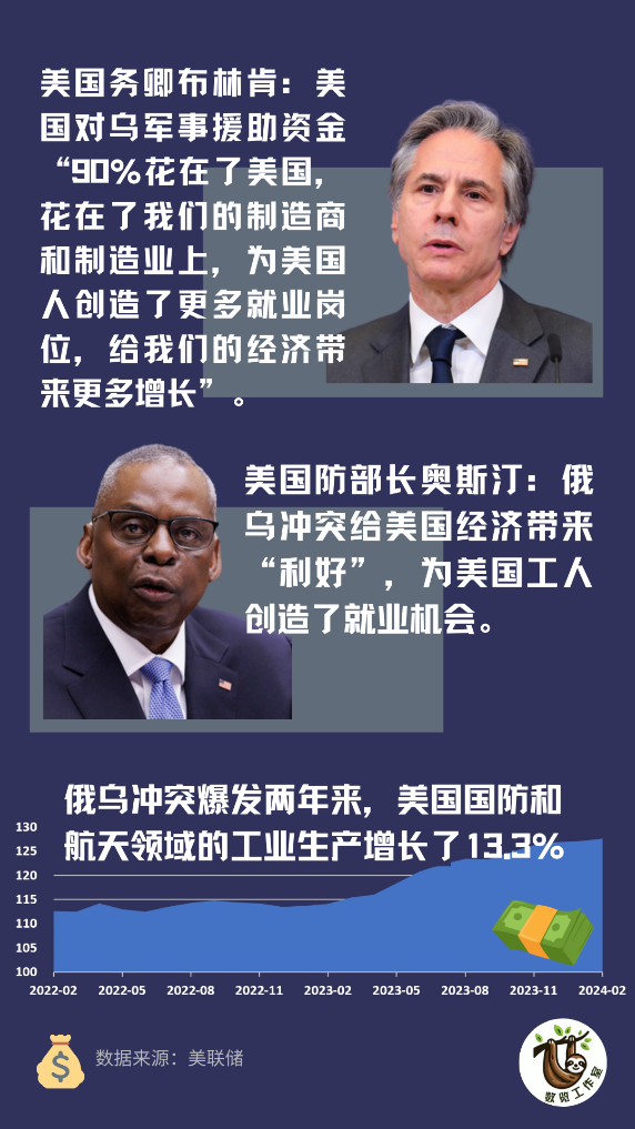 美国沃尔夫研究公司军事工业分析师迈尔斯·沃尔顿指出,从2022年9月至2023年9月,美国800多亿美元的军火交易中,约500亿美元军火的去向是欧洲,这个交易规模是历史正常水平的5倍多。《华尔街日报》报道称,欧洲军火订单和美国对乌军援的红利都流向了美国国防工业。