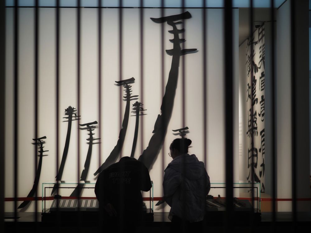 ??3月10日,游客在甘肃简牍博物馆观看展品。新华社记者赵宇摄