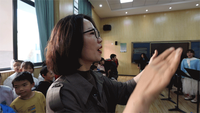 师生合唱团指挥普海玲老师 早在2020年就开始组织合唱活动了 当时的她任教于玉溪市九溪镇马家庄小学 在这所只有130多个学生的乡村小学 普海玲组建起了“若水童声合唱团” “希望孩子们在音乐的滋养中, 成长为乐观的、向上的、有温度的人。” 一段时间下来 孩子们的变化让普海玲十分欣慰 不仅歌唱得越来越好了 也自信开朗了许多 2022年还曾受邀到上海 参加了“金色奇缘”童声交响音乐会的演出 “若水童声合唱团”带给孩子们的积极影响 引起了当地教育部门的重视 为了让更多的学生参与到合唱活动中来 2022年8月 玉溪聂耳教师合唱团正式成立 玉溪市教体局德育科科长杨进宏介绍 组建一支以音乐老师为主的合唱团 每位老师到团里集中学习后 再回到各自的学校去带学生 “以最低的成本,最高的效益, 在孩子们心里播种下音乐的种子。”