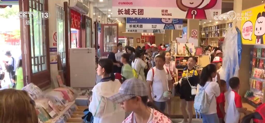 为了暑假,店里上新了小朋友喜爱的文创组合,可以写名字的“通关文牒”、能“挖”宝藏的长城砖、随时变换色彩的“四季长城”摆件都很受欢迎。