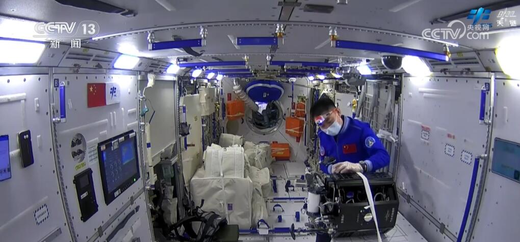 在空间科学实(试)验方面,除完成无容器柜、流体物理柜实验样品更换等多项工作外,乘组对燃烧科学实验柜中实验插件的过滤窗进行了更换,后续将开展沸腾换热与强化机理研究。