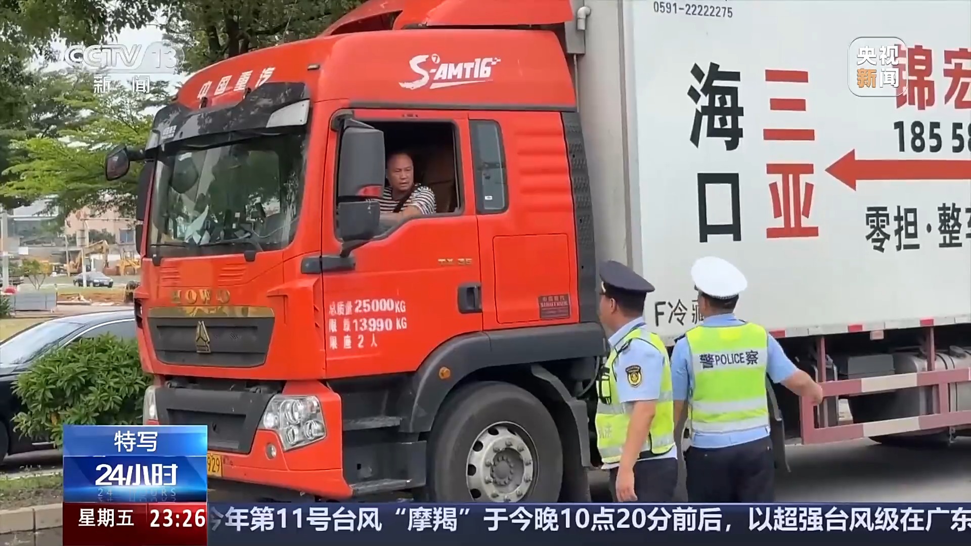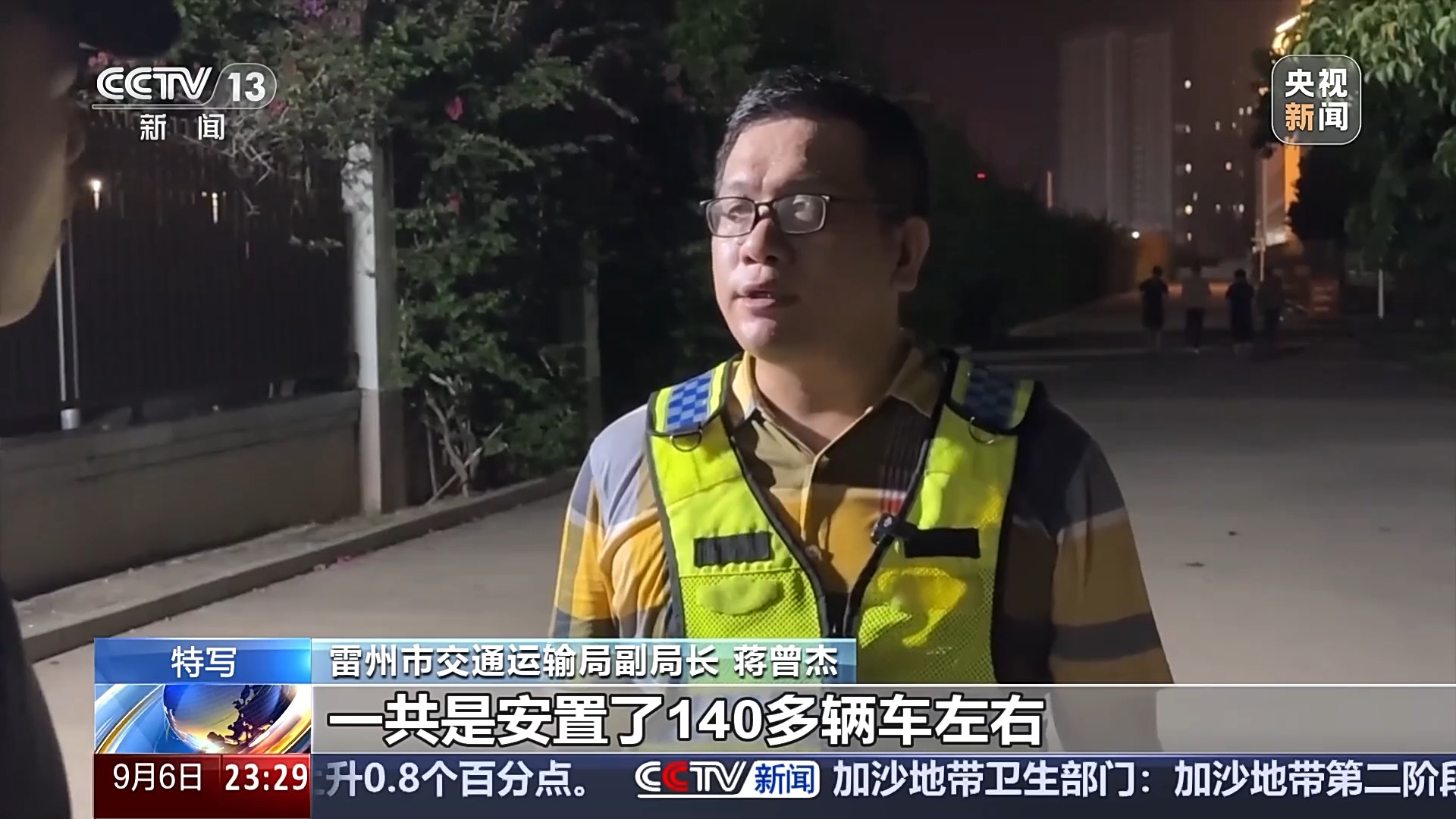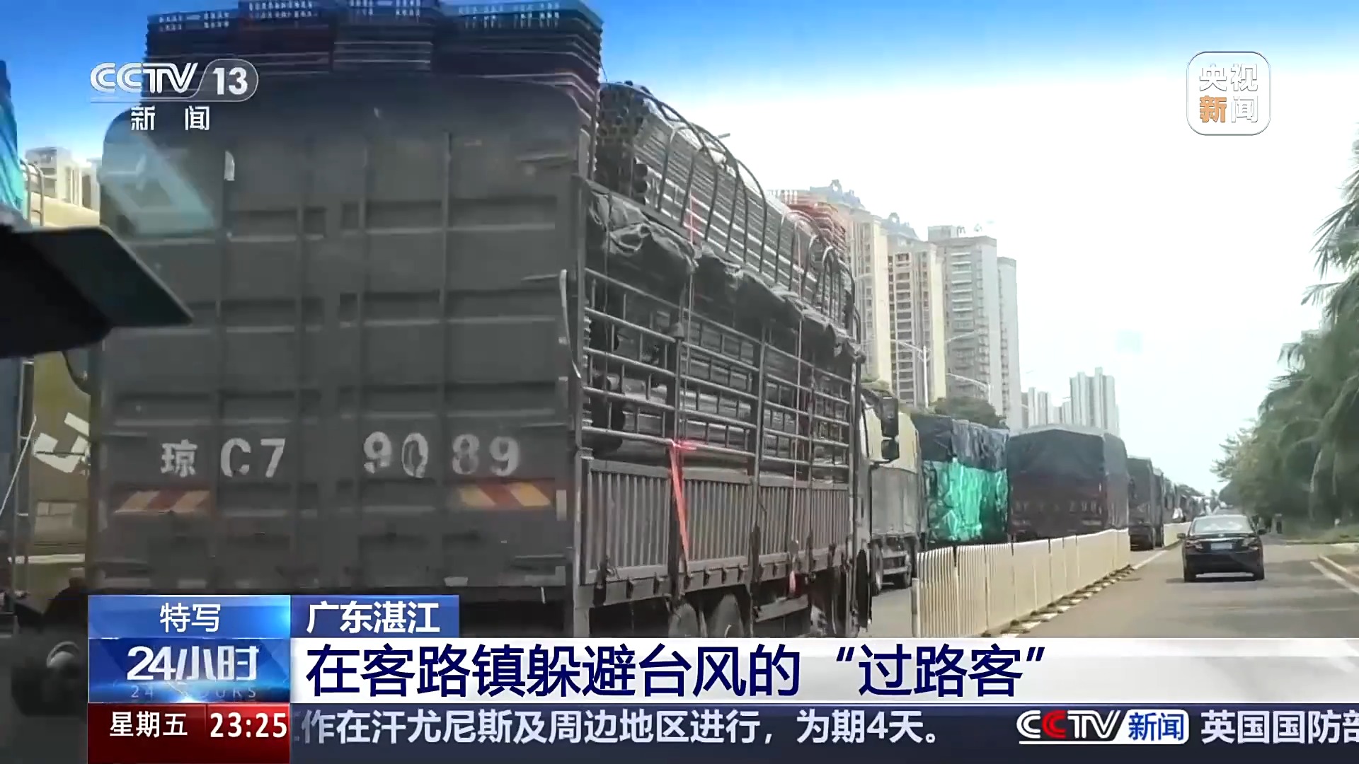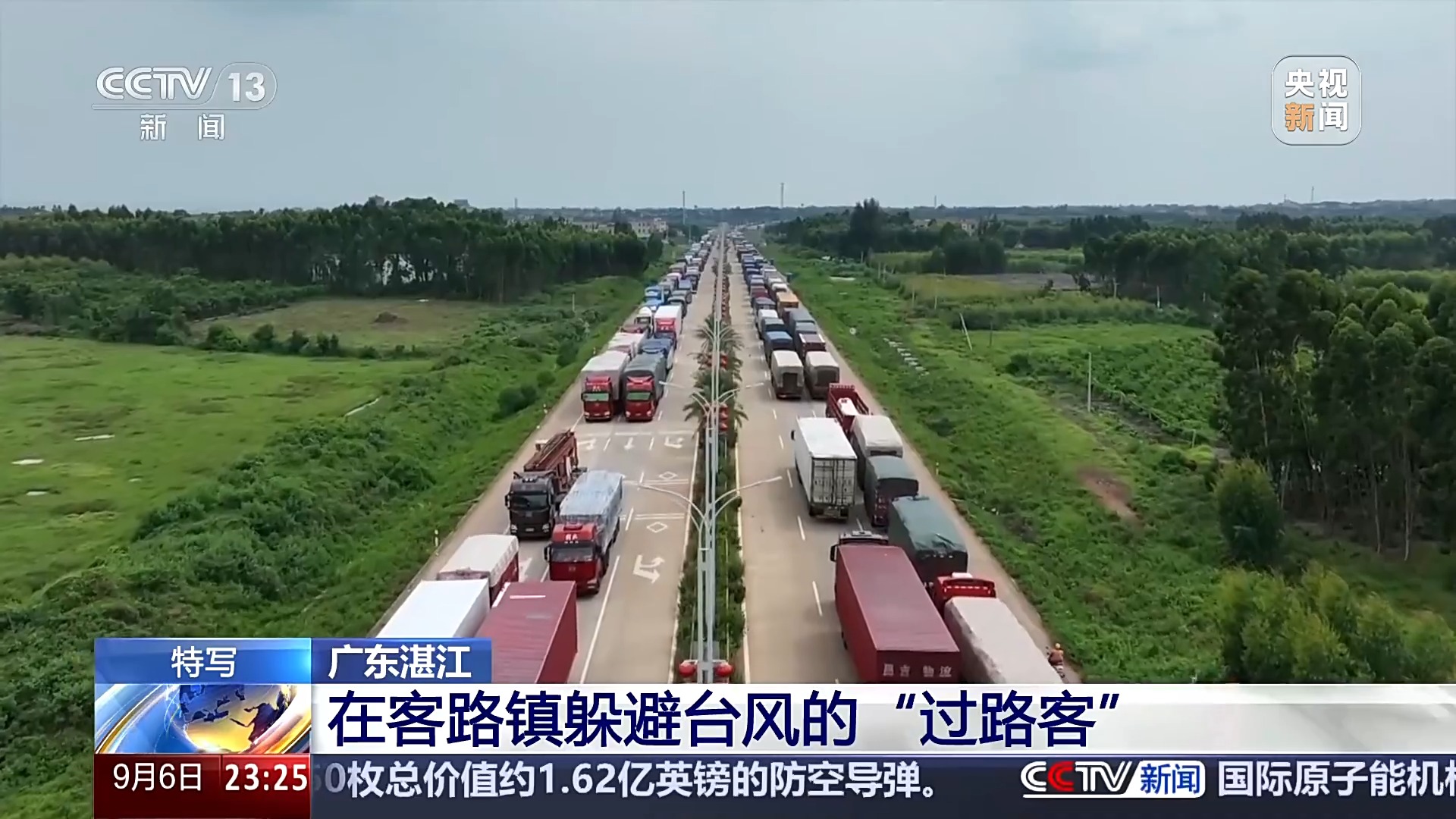 雷州市交通运输局副局长 蒋曾杰:今天我们两个点一共安置了140多辆车,这个数据一直都会增加。我们把这些大货车留在这个路的两边安置,确保207国道不会堵塞。井然有序了,就不会让大家在路上排个几天队,大家心情都不好。台风来的时候确保老百姓的生命安全和财产安全,这是放在第一位。