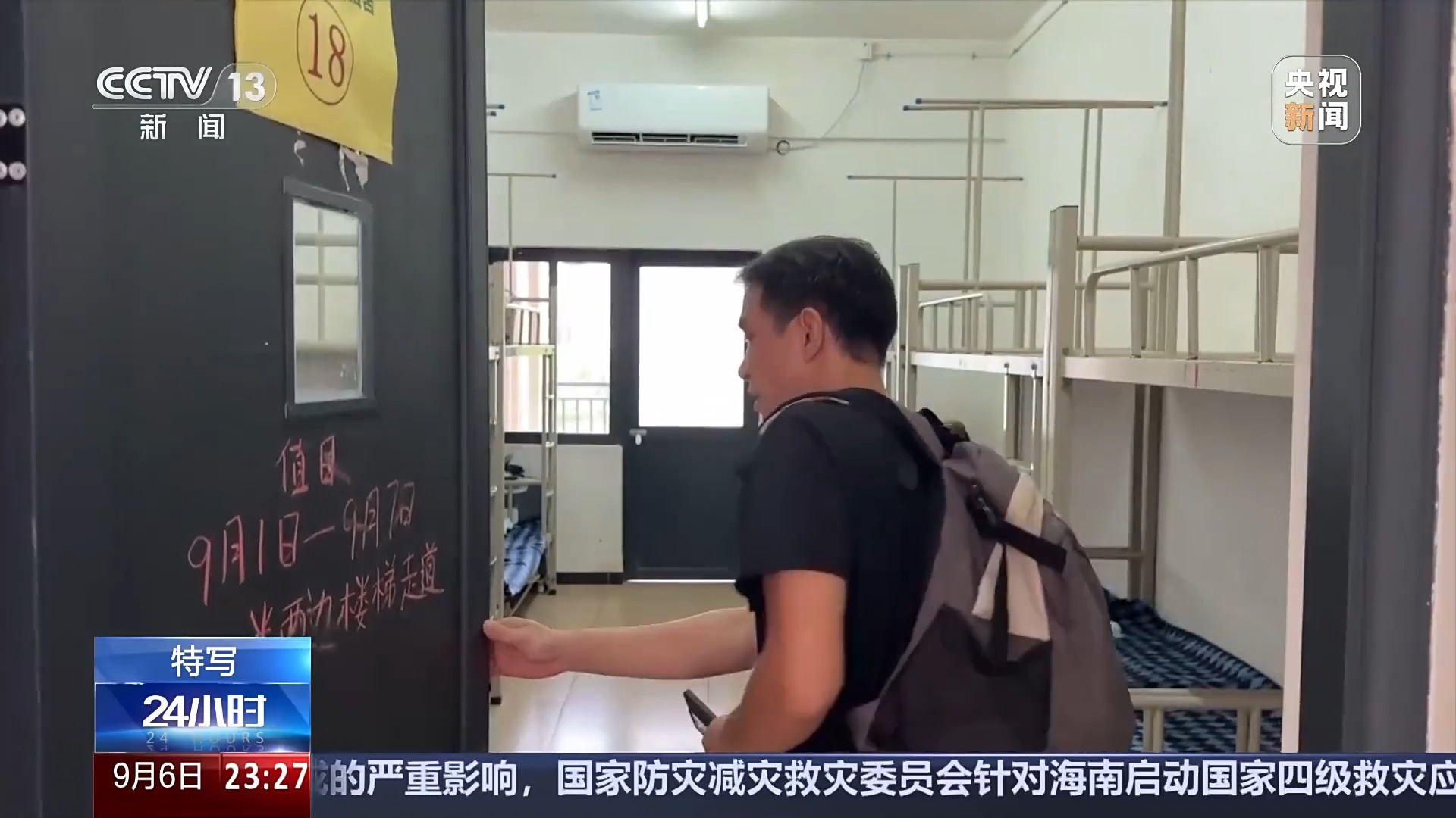 因台风停课的雷州一中,提前一天就整理出了学生宿舍,供给滞留的货车司机留宿。