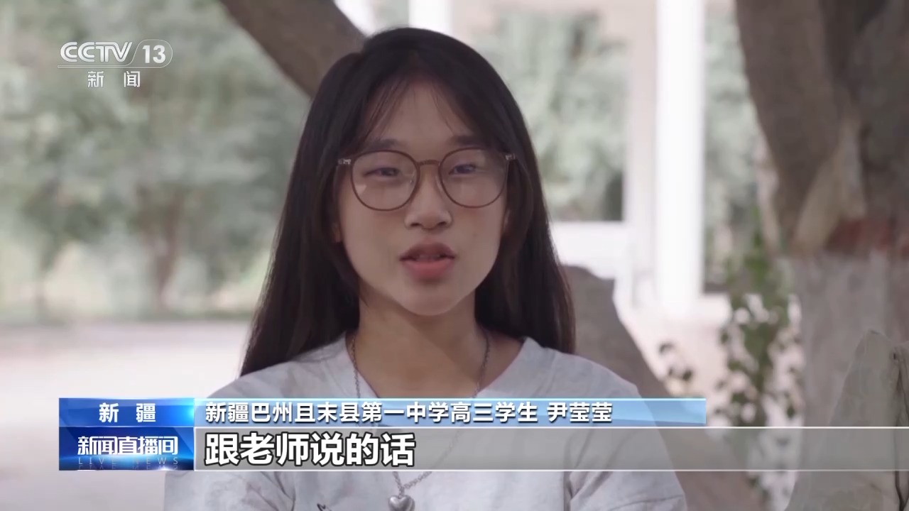 新疆巴州且末县第一中学高三学生 尹莹莹:心里有什么憋屈的事情,跟老师说的话,老师会激励你、安慰你、宽慰你,可以说是无话不谈的好朋友。