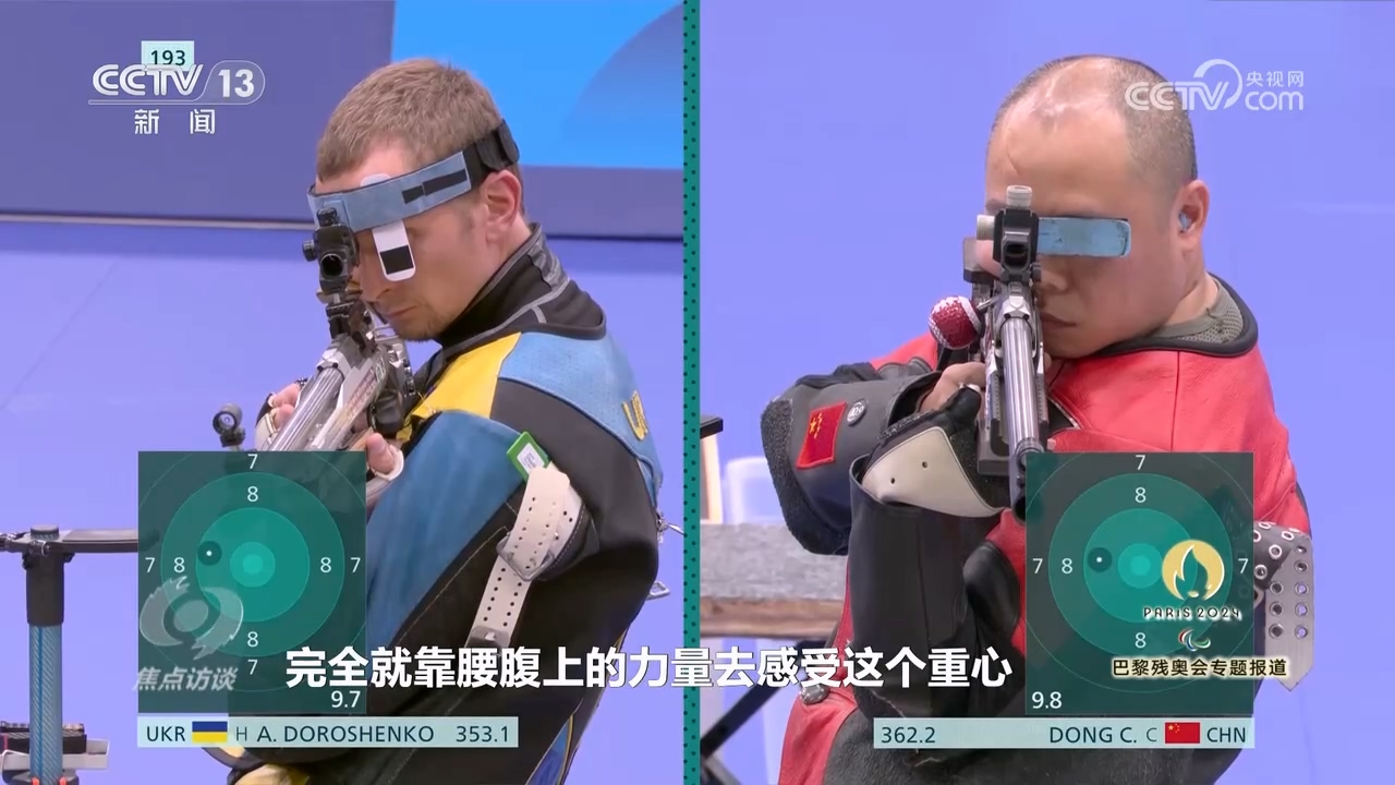 巴黎残奥会中国体育代表团射击队队员董超:“我是截肢,相对骨骼支撑没有那么多,完全靠腰腹上的力量。健全人是站着的,呈三角式的,相对来说骨骼支撑更稳定一点。”