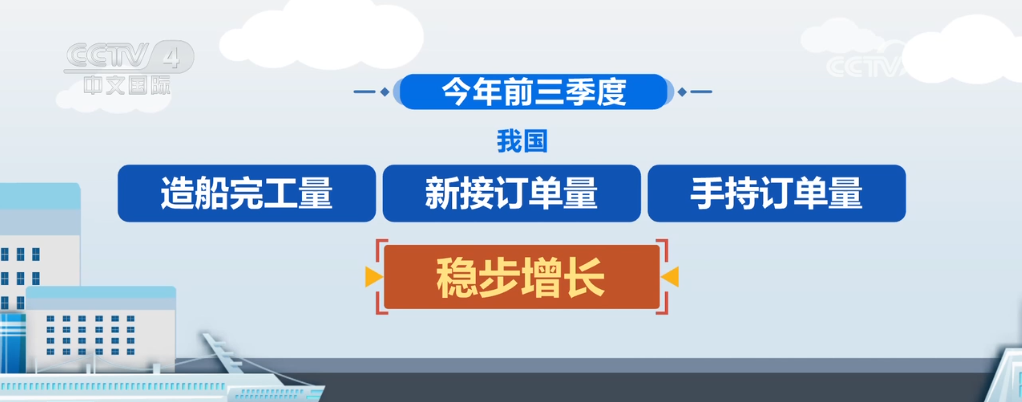 最新数据显示,今年前三季度,我国造船完工量、新接订单量、手持订单量稳步增长,三大指标分别占世界市场份额的55.1%、74.7%和61.4%。