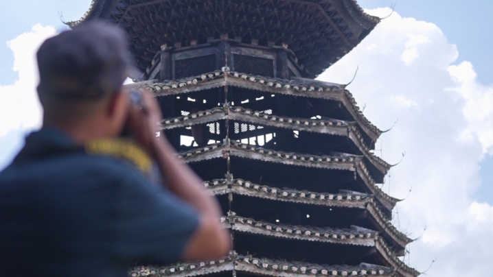 从江县文物事业发展中心主任杨昌焕频繁到访增冲村,只因为这里到处都是乡土智慧的结晶。“无法复制、独一无二……”提及增冲鼓楼,杨昌焕有着说不完的夸赞。“尽管历经多次维修,但其主体结构依然保存完好。鼓楼平面为正八边形,立面为穿斗式十三层密檐双层楼冠八角攒尖顶,独特的‘内四外八’柱网布局,在节省材料的同时最大化利用了底层空间。楼身与楼冠之间独特的构造关系,虽然看似结构稳定性差,但它却耸立300多年依旧安然无恙,这无疑展示了建造者的高超技艺。”