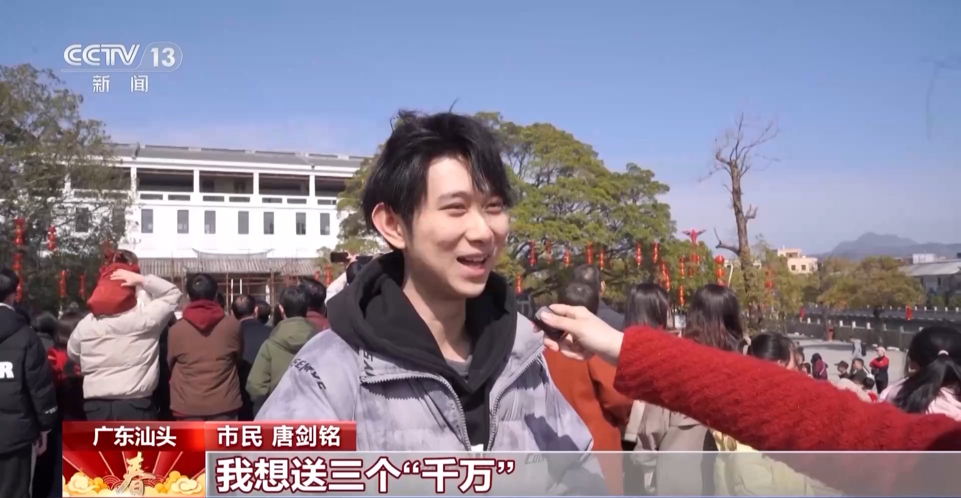市民 唐剑铭:我想送三个“千万”,千万要开心,千万要健康,特别是千万要发大财!
