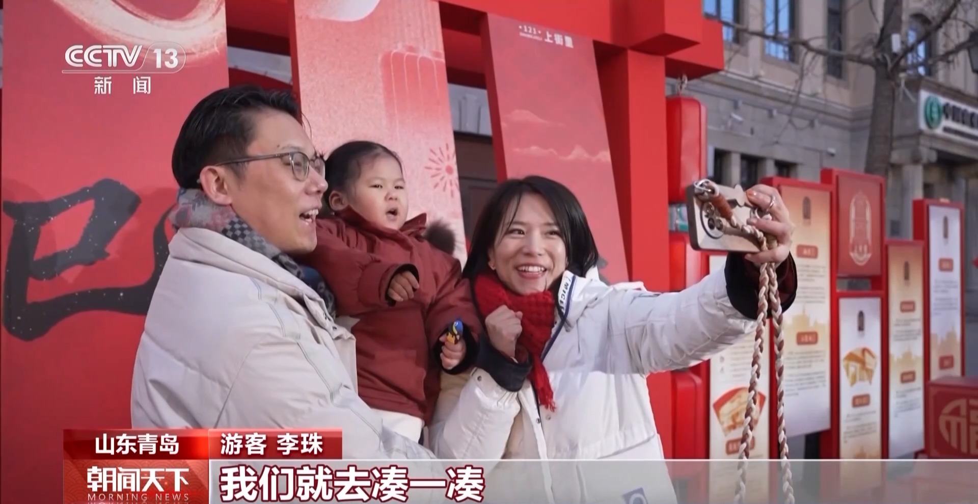 游客 李珠:今年春节就遛娃,娃想去哪儿就去哪儿,她想吃啥我们就吃啥。今天准备去即墨古城转转,看看哪里有热闹我们就去凑一凑。只要是过年就挺开心的。