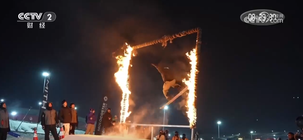 春节期间,阿勒泰游客数量突破新高。大年初四一天,将军山滑雪场接待游客量就突破1.8 万人次。雪友们白天畅滑粉雪,晚上还能体验刺激的滑雪穿火圈,从雪道上脚踏雪板快速滑下,一跃而起,穿过燃烧的火圈。