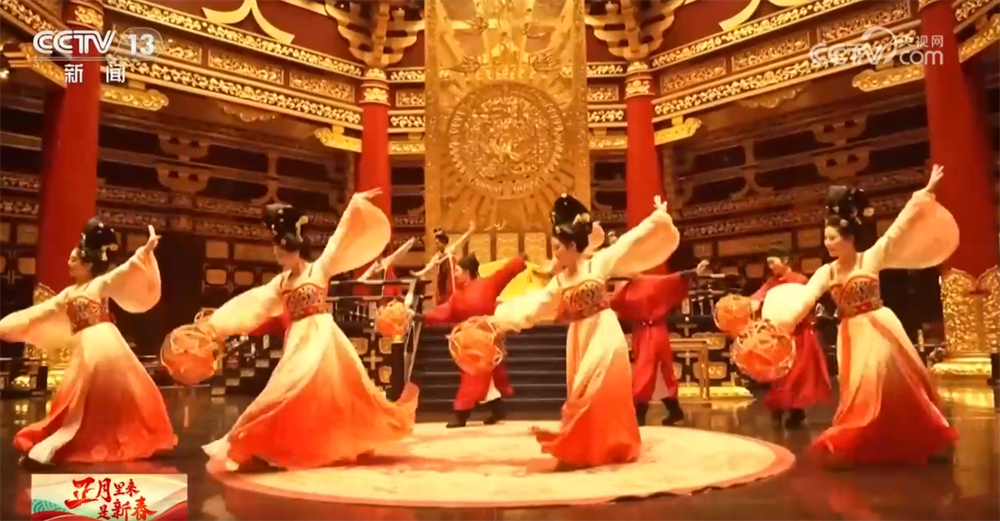 在河南郑州星河里唐宫夜宴实景演绎文化园,春节限定节目《元正夜宴》正在精彩上演,游客可以近距离观赏打鱼灯、挂桃符、吃五辛盘等唐代过年文化。春节期间,每天都有近百场沉浸式古风演绎在这里上演,游客穿唐装、品唐俗、吃唐席,一站式体验传统年俗。