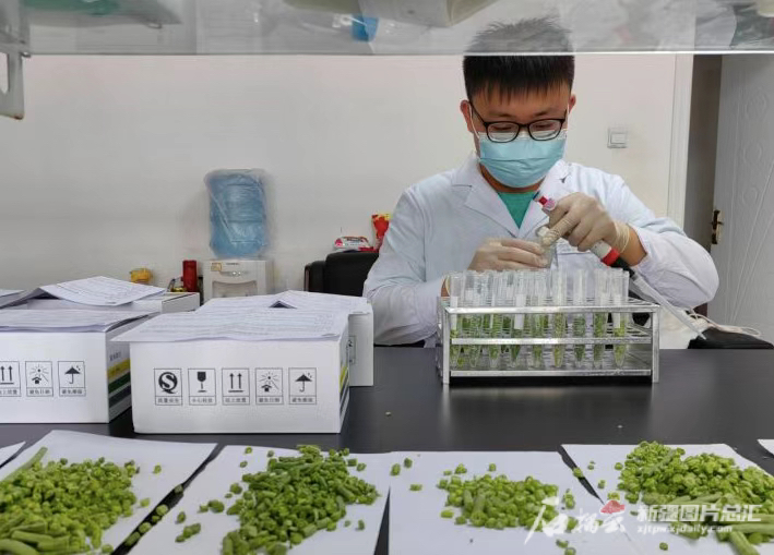 新疆九鼎农产品批发市场的果蔬都要接受农残检测后才能进场交易。 王晓燕 摄