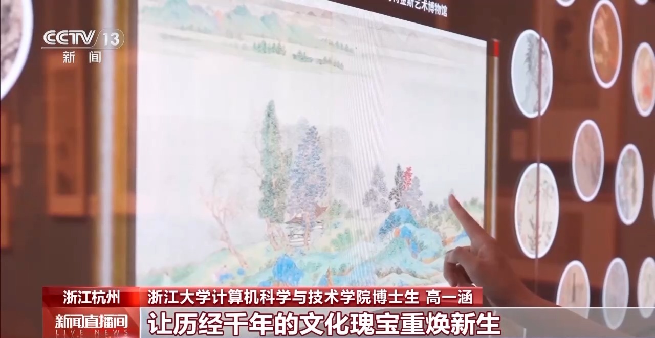 浙江大学计算机科学与技术学院博士研究生 高一涵:古画的深邃意境、巧妙笔法让我被中华传统文化的博大精深所折服,通过计算机科学与传统艺术的融合,也可以为传统艺术注入新的活力,让历经千年的文化瑰宝重焕新生。