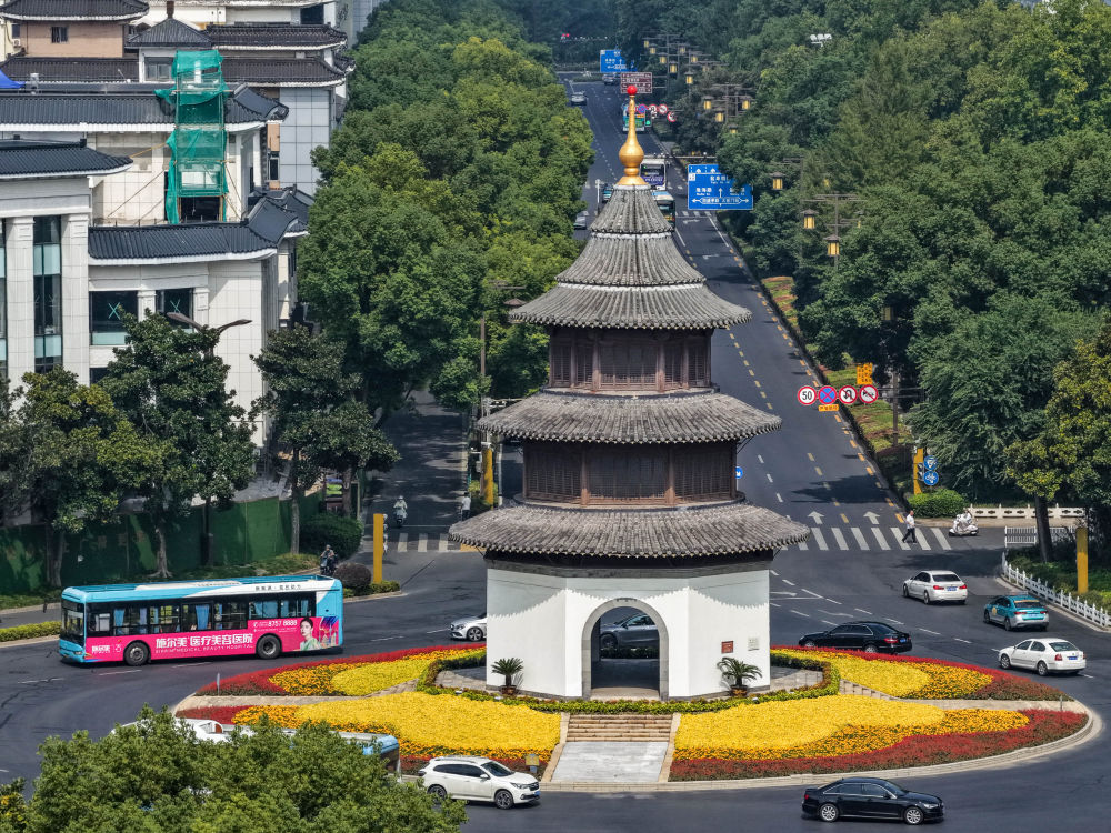 这是10月11日拍摄的扬州崔致远纪念馆(无人机照片)。