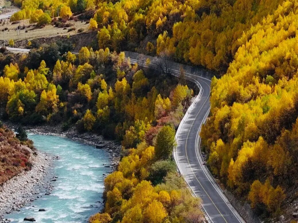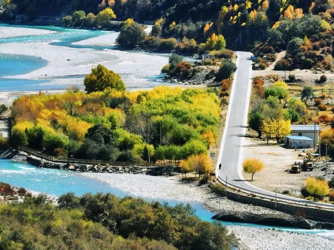 秋季这里是最佳拍摄点,金黄的杨树林、翠绿的青冈树和火红的枫叶交织成五彩画卷,无需任何滤镜就美得惊人。