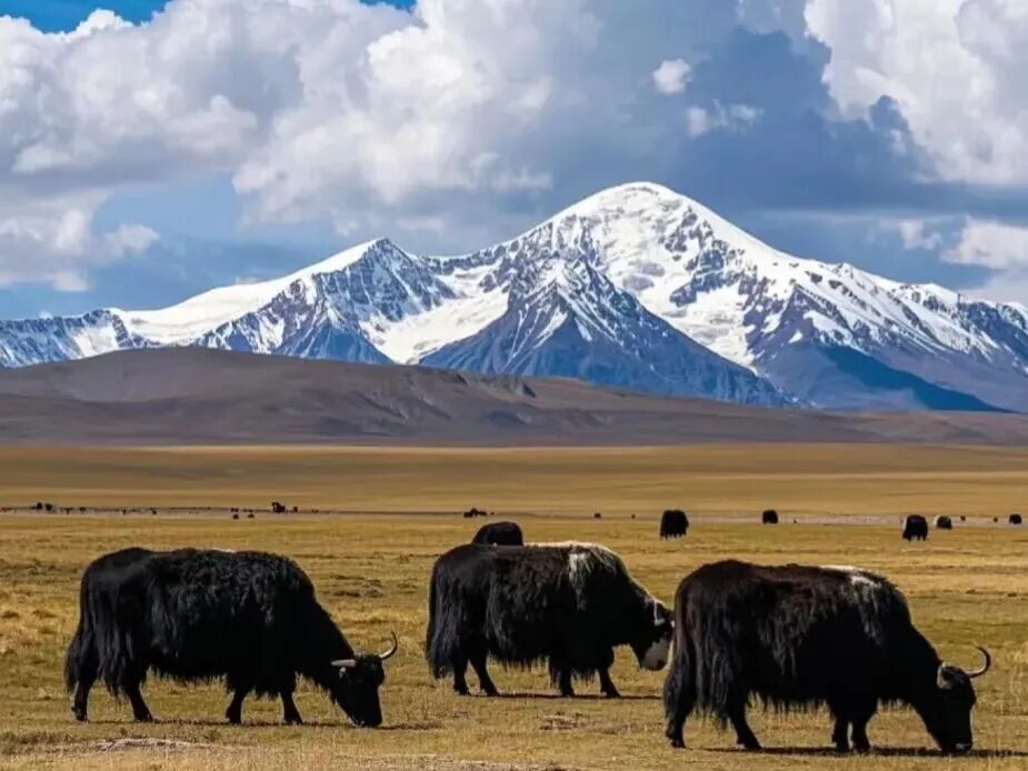 这里能拍出“雪山映湖”的经典画面,远处的念青唐古拉山倒映在湖水中,蓝天白云作为天然背景,构图简单却气势恢宏。