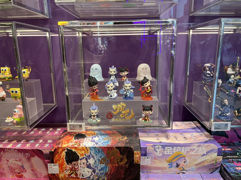 ??北京一家泡泡玛特门店里陈列的哪吒系列手办。新华社记者阳娜 摄