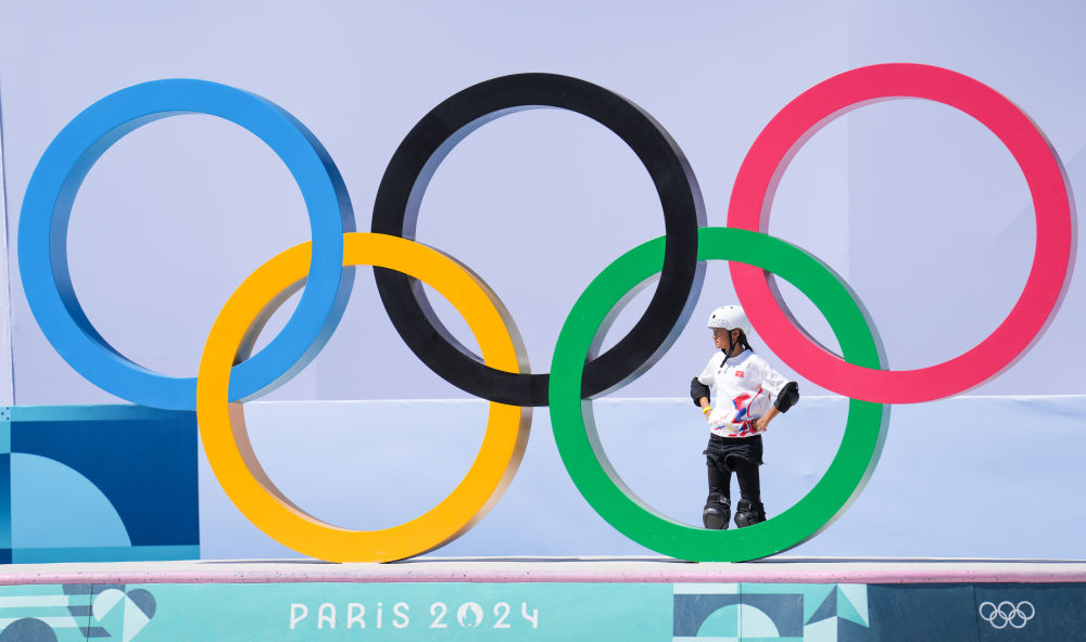 ??2024年8月6日,巴黎奥运会滑板女子碗池预赛在巴黎协和广场举行,中国选手郑好好在比赛中。新华社记者 杜宇 摄
