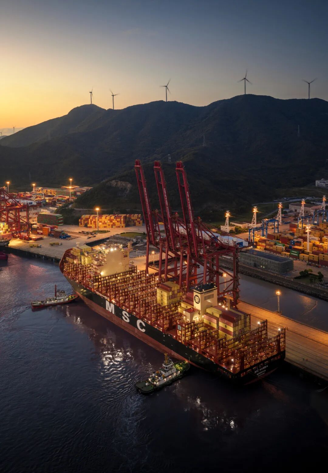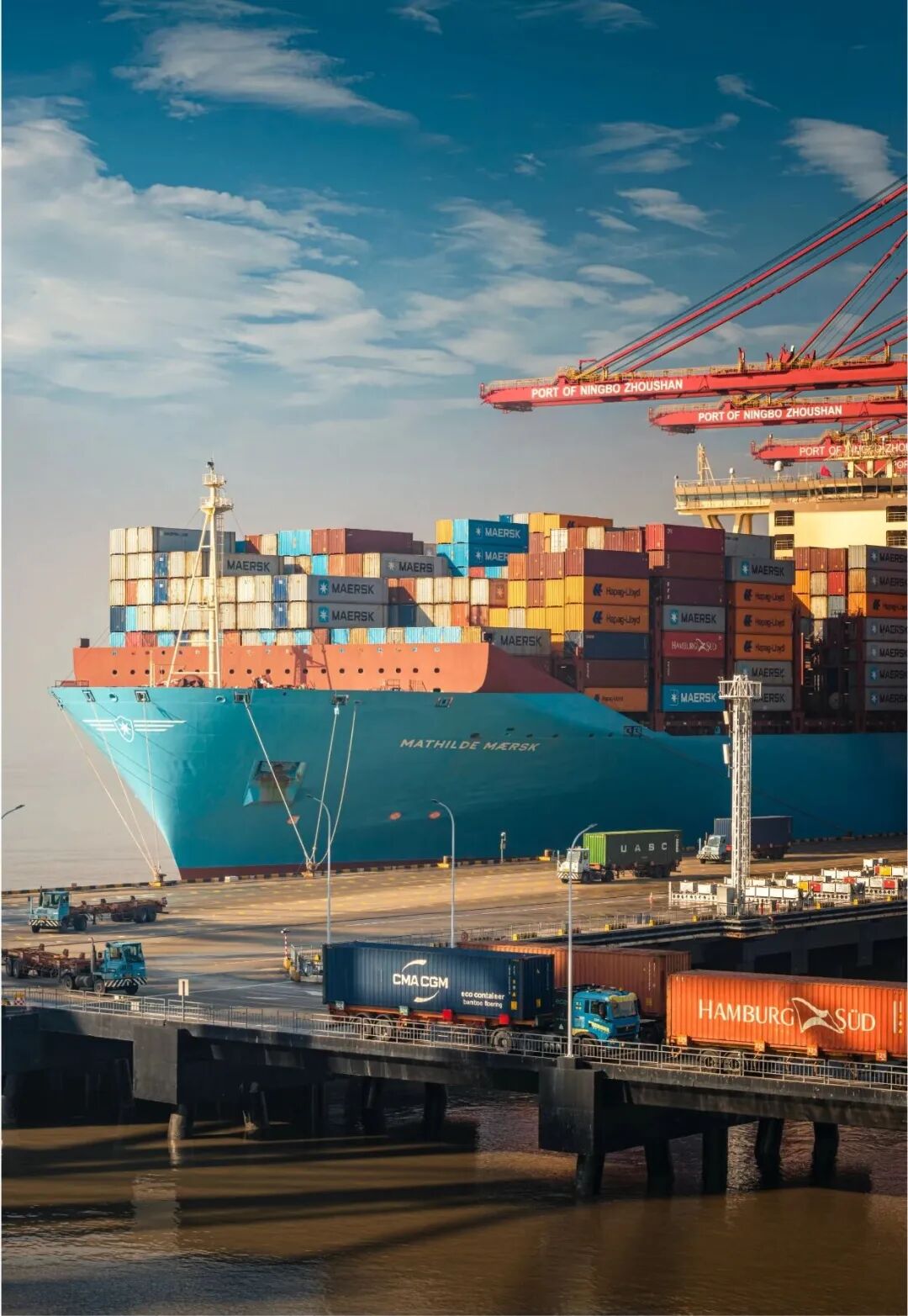 东临太平洋 300多条集装箱航线 连接全球600多个港口 西向广袤腹地 依托100多条海铁联运线 将运输网络延伸至全国16省69个市 长江与远洋航线在此无缝链接 中欧班列从zhè里鸣笛出发 将内陆的制造 装进世界的航道
