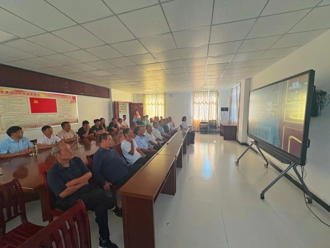 2025年9月3日,大湾村村“两委”干部和部分村民聚集在村部,共同观看纪念中国人民抗日战争暨世界反法西斯战争胜利80周年阅兵式的直播。
