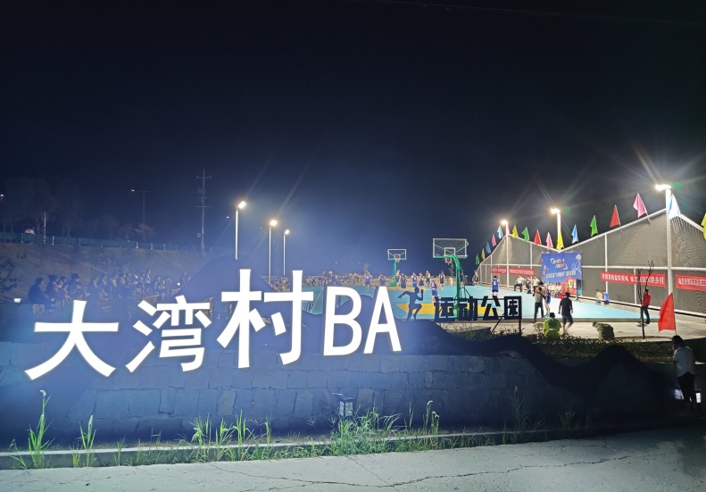 晚上7点,夜幕笼罩着寂静的大山,村民王良洲身穿“大湾11号”球衣,正往村里的灯光球场赶。