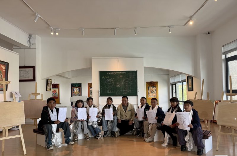 午后,体验馆又迎来新的访客。顿珠穿梭其间,轻声指导握笔,讲解颜料特性。学徒们则在辅助教学的过程中,深化着自己对唐卡的理解。“在这里教别人,反而让我对唐卡懂得更深了。”体验馆画师群培笑着告诉记者,“向各地体验者讲解,连我的普通话都进步了。”