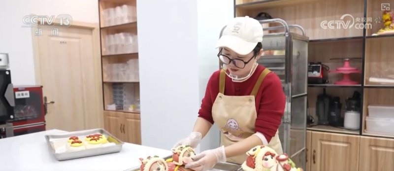 面点师杨晓兰介绍,这一款是“发财马”,别看它小小一个,里面还有小惊喜。这里面有8个“金元宝”,是为了讨一个好彩头,年夜饭大家围在一块儿吃饭,抢这个“元宝”寓意特别好。