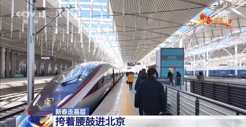 总台央视记者 郑连凯:现在的时间1月26日早上7点30分,延安的天刚蒙蒙亮,腰鼓队队员已经赶到延安站,稍后他们要搭乘延安开往北京的G359次首发列车。