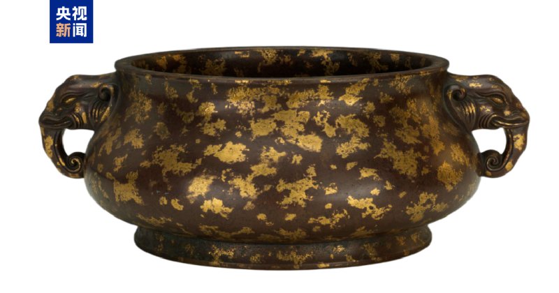 △清仿宣德款象耳洒金铜炉,天津博物馆藏。