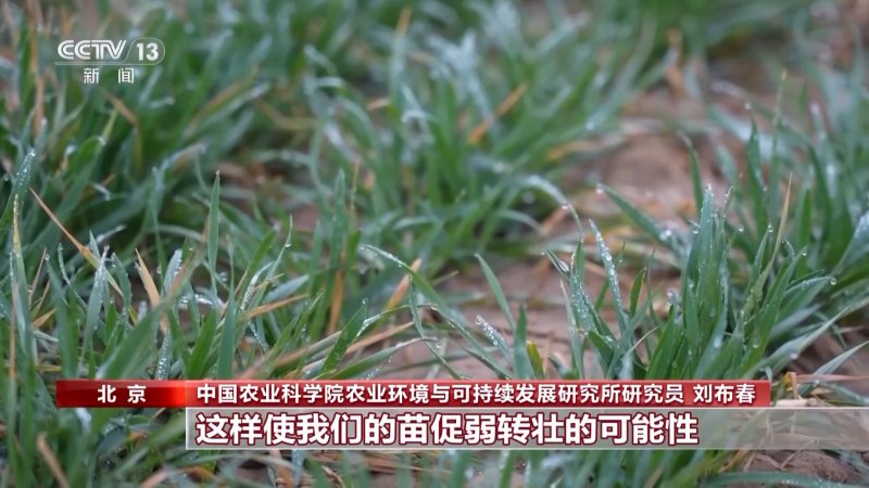 中国农业科学院农业环境与可持续发展研究所研究员 刘布春:春雨贵如油,这场大范围雨雪天气增加了土壤的墒情,为春季管理浇水环节节约了大量灌溉成本。