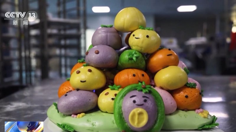 孩子们发挥想象,用各色面团捏制成燕子、南瓜、柿子等卡通造型,经过组装与蒸制,一个“卡通饽饽塔”很快出锅。