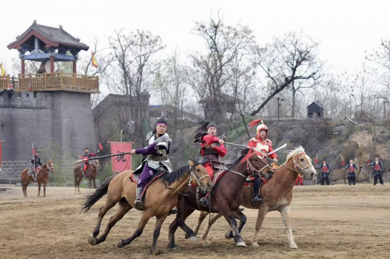 《三打祝家庄》的实景马战和夜幕降临后的非遗绝技“打铁花”都是万岁山武侠城的核心节目。
