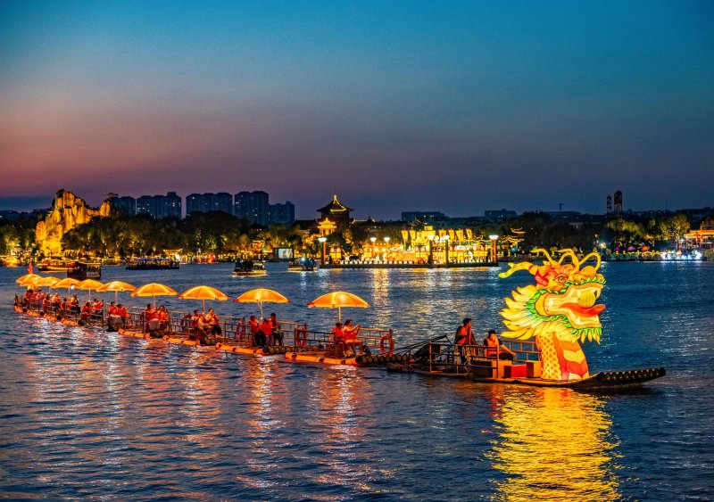 汴河游船景区是一处以北宋汴河历史文化为核心的特色游览景区,通过城市的两湖一河,乘船游览的方式串联起周边八大景区。沿岸打造的宋词乐舞、豫剧、古典民乐等精彩表演,也为游客带来一次宋韵十足的沉浸式体验。