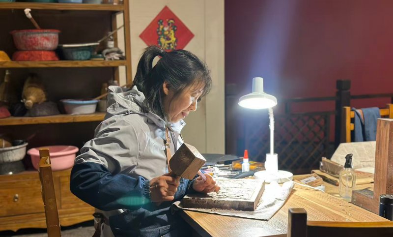 不止于观展,开封博物馆更有沉浸式非遗体验。在朱仙镇木版年画艺术展,体验一把拓印;在汴绣展厅当一回绣工……开封博物馆正通过“活态传承”的方式,让千年非遗技艺走进游客的视野,让游客成为非遗文化的传播者。采风团成员现场亲手体验朱仙镇木版年画拓印,通过指尖感受非物质文化遗产的匠心。