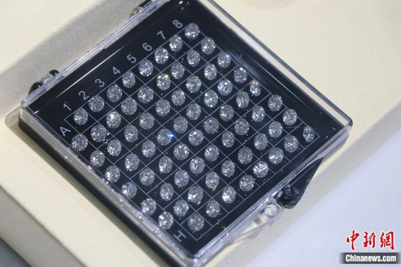 各种规格的培育钻石。 李海珠 摄 河南企业生产的培育钻石 大克拉、颜色多、超炫火彩 价格却是天然钻石的1/5甚至1/10