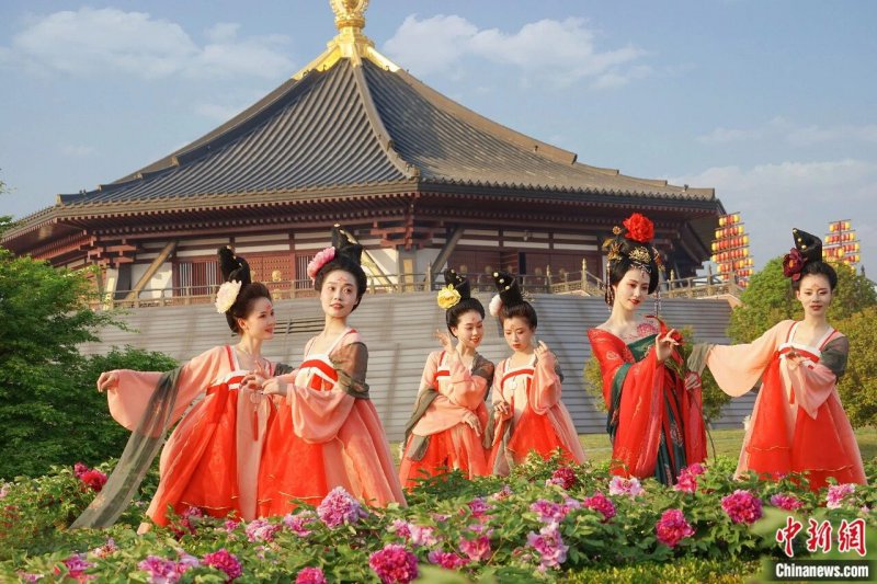 牡丹丛中的汉服秀。 牛林林 摄 你尽可在满城汉服妆造馆 选一身汉服 在洛邑古城、天堂明堂等地 赏国色牡丹 感受十三朝古都的春日浪漫