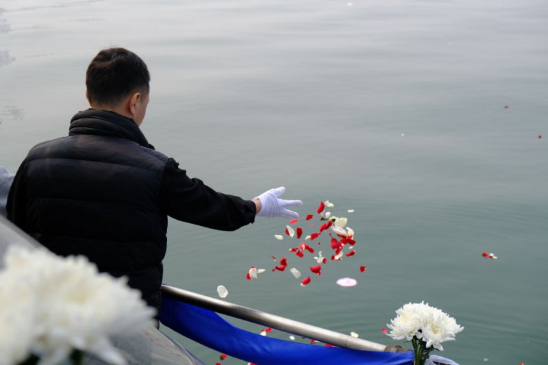 “这是老人生前的遗愿。大海潮起潮落,象征着生命的循环。海葬既有美好的寓意,又能节省土地资源,减轻家庭负担。”骨灰海葬家属王先生说。