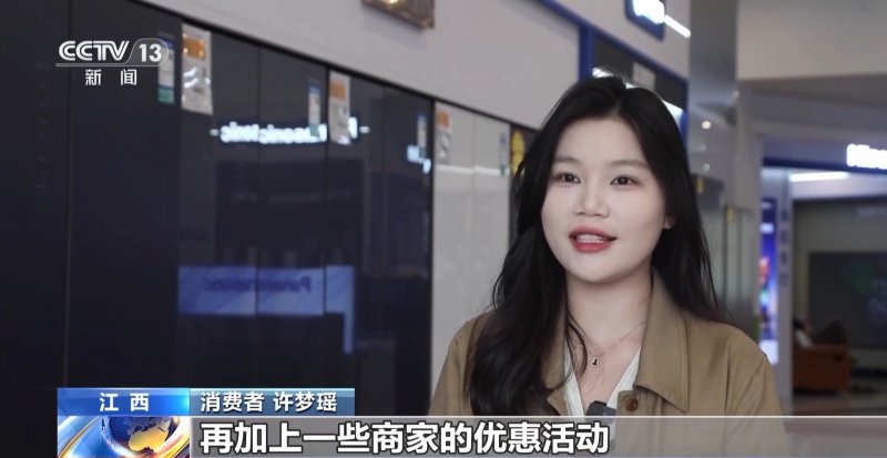消费者 许梦瑶:因为现在有以旧换新的政策,再加上一些商家的优惠活动,价格活动力度比较大,一站式选购了家电,给我们省了很多钱。