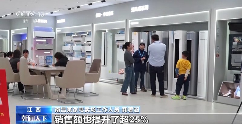 南昌某家电卖场工作人员龚著超:近期我们门店的客流量较平时增长了30%,销售额也提升了超25%。其中,智能家电、绿色节能家电尤其受到消费者欢迎,销量占比也接近六成。