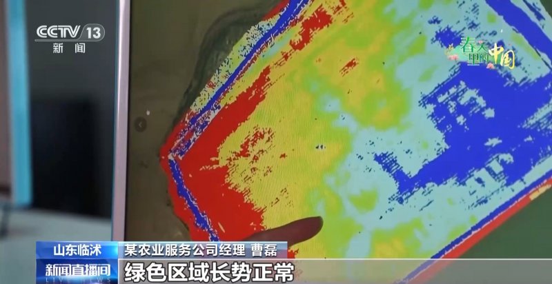 某农业服务公司经理 曹磊:图中红色区域表示缺氮严重,需要多追;绿色区域长势正常,少追肥或者不追肥。飞机按图作业,可以精准施肥。