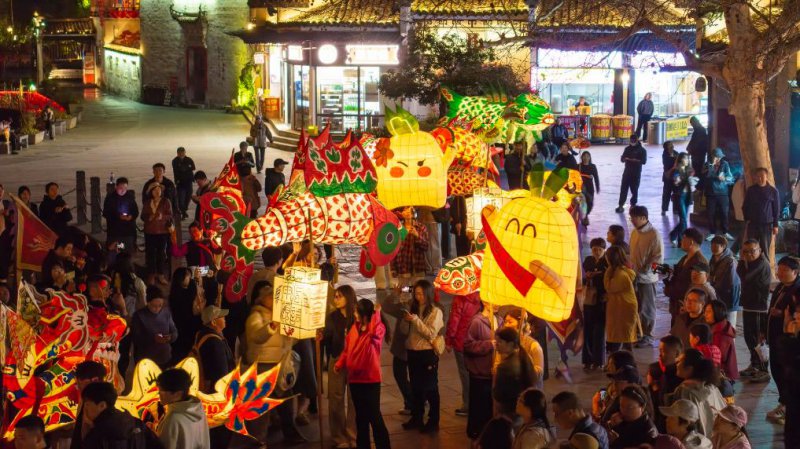 3月28日,西递“闹灯会”花灯巡演活动现场。新华社发