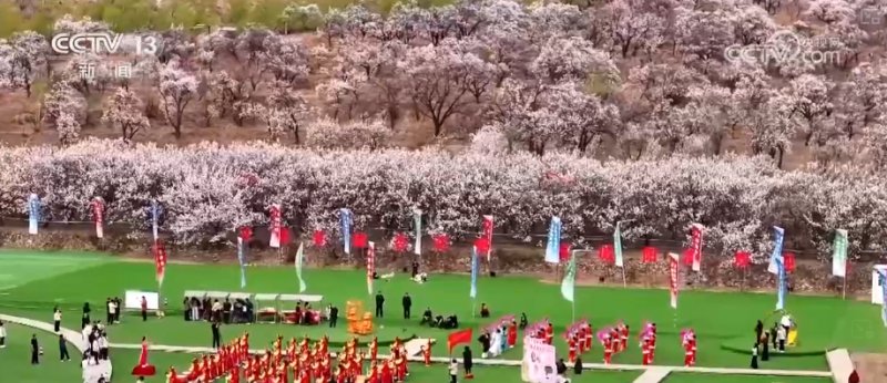 锣鼓秧歌闹春日 长城杏林入画来