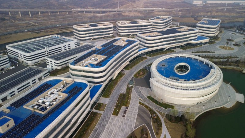 位于烟台市黄渤海新区的万华全球研发中心(无人机照片)。新华社记者 徐速绘 摄