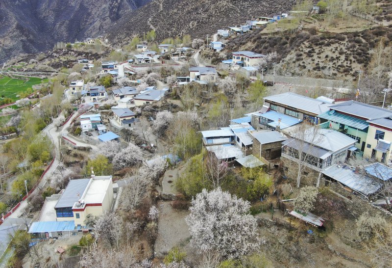 从林芝市区出发,沿560国道向朗县行驶,穿过连绵群山,公路旁、山坡上、坳谷中,一栋栋掩映在桃花丛中的新式藏族民居不时闪现,吸引了记者的目光。