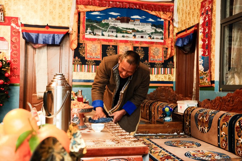 每一户村民的新房都独有特点:要么有天窗,带露台;要么因地制宜,靠山打造;要么花团锦簇,装饰精美。无一例外的是,每一户都干净、整洁、漂亮,家具家电齐全,既具有当地藏式风格特色,又极为现代化,充满了创造力。而群众的脸上,总是挂着真挚热情的笑容,让人能够感受到他们的幸福。