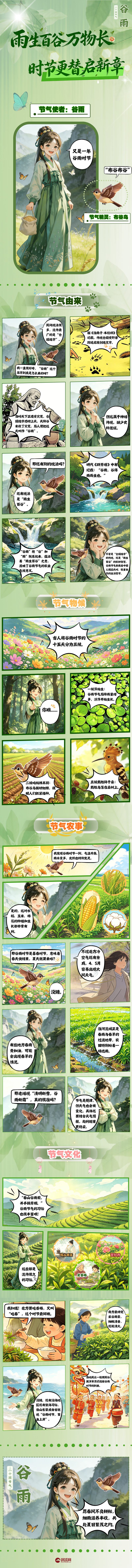 雨生百谷,万物竞发。又是一年谷雨时节,跟随节气使者“谷雨”与节气精灵“布谷鸟”,走进春季最后一个节气,在时节更替中迎接盛夏序章。