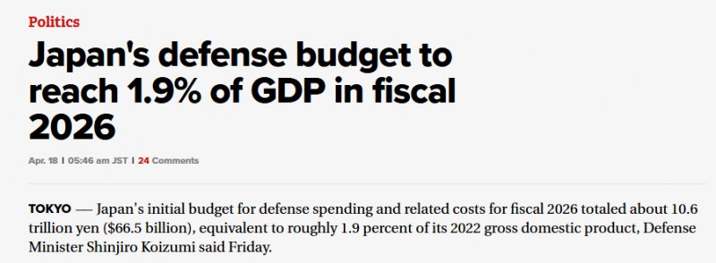 上周,日本防卫大臣小泉进次郎还进一步宣称,2026财年,日本全部国防开支及相关费用的初步预算总额,将达到约10.6万亿日元。