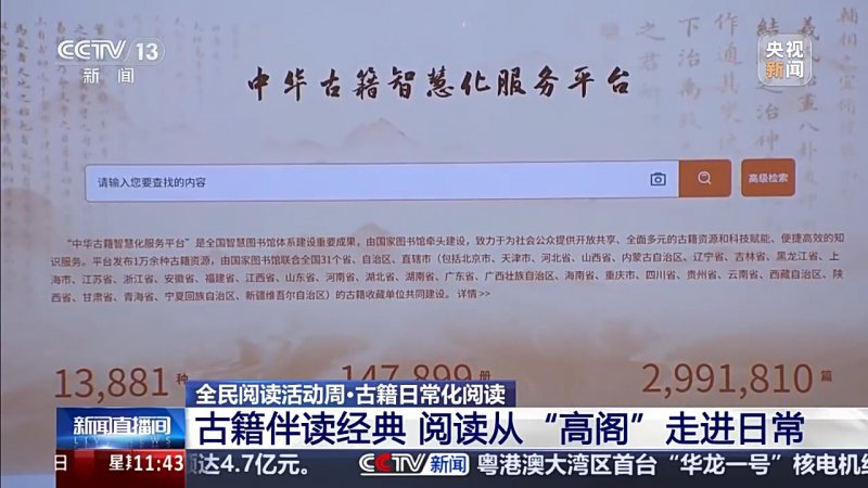 国家图书馆联合全国180多家古籍收藏单位,打造了一座“云端古籍图书馆”——中华古籍智慧化服务平台。上线一年多以来,已经上传了1.3万多种14余万册古籍。古代纪年自动换算现代纪年,古代地名转换今天省市一键查询。古籍内容可以通过大模型实现文言文与白话文,简繁体、横竖版转换。