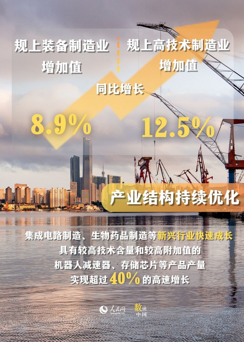 今年以来,我国工业经济总体呈现向新向好、稳中有进态势,切实发挥了稳定宏观经济大盘的“压舱石”作用。让我们通过一组数据,看懂中国制造新动能。